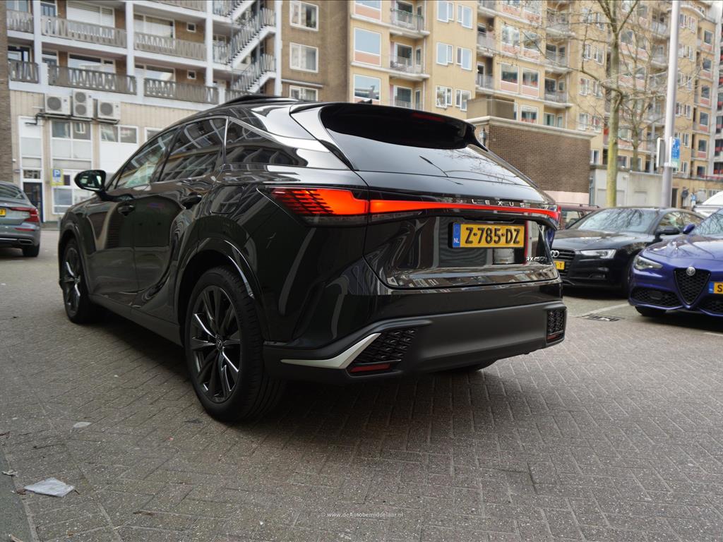 Lexus RX 450h+ F Sport Design | Premium Graphite Black | Panoramadak | Adaptieve cruise control + lane departure + rijstrookwissel hulp | Vollederen interieur | Stoel- en stuurverwarming + stoelventilatie | Premium audio/ Apple Carplay/ Android Auto | Alarm met volgsysteem | Rondomzicht 360 camera | Sfeerverlichting | Eerste eigenaar en dealer onderhouden | Fabrieksgarantie 02/2027 | Garantie hybride batterij en hybride systeem 2/2034 | achterasbesturing, achterbank in delen neerklapbaar, airco separaat achter, alarmsysteem, Anti Blokkeer Systeem, Apple Carplay/Android Auto, armsteun achter, audio installatie premium, autonome parkeerfunctie, bandenspanningscontrolesysteem, bestuurdersairbag, Bluetooth, bots herkenning en activatie, bots waarschuwing systeem, buitenspiegels verwarmbaar, bumpers in carrosseriekleur, camerabeeld in binnenspiegel, centrale airbag voor, connected services, cruise control adaptief met Stop&Go, DAB, dakrails, dodehoek detectie, draadloze telefoonlader, electronic climate control, elektrisch bedienbare achterklep met sensorsturing, elektrisch verstelb. bestuurdersstoel met geheugen, elektrisch verstelbare passagiersstoel, elektrisch verstelbare stoel(en) met geheugen, Elektronisch Stabiliteits Programma, elektronische remkrachtverdeling, geluid- en warmtewerend glas, getint glas en zonwering achter, grootlichtassistent, head-up display, hemelbekleding donker, hoofd airbag(s) achter, hoofd airbag(s) voor, keyless entry/start, knie airbag(s), LED achterlichten, LED dagrijverlichting, LED koplampen adaptief, lederen bekleding, lendesteun(en) verstelbaar, lichtmetalen velgen 21", mistlampen voor, multimedia scherm standaard, navigatiesysteem full map, oplaadmogelijkheid, parkeer assistent, parkeersensor voor en achter, passagiersairbag, regensensor, rijstrooksensor met correctie, schakelpaddles, sfeerverlichting, sportief interieur, spraakbediening, stoel ventilatie voor, stuur leder, stuur multifunctioneel, stuur verwarmd, verkeersbord detectie, vervolgbotsing preventie, volledig digitaal instrumentenpaneel, voorstoel(en) elektrisch verstelbaar, voorstoelen verwarmd, zij airbag(s) achter, zij airbag(s) voor, zonnescherm achterruit, elektrisch glazen panorama-dak, premium metaalkleur.
